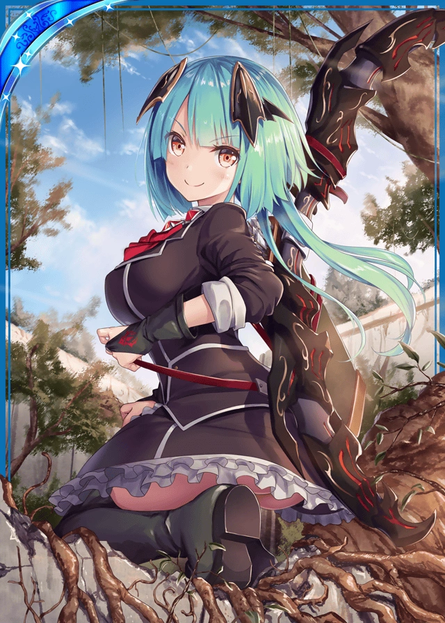 Prikat is in her minister outfit. She wears it to help Jigan train for her duel with Calamity.